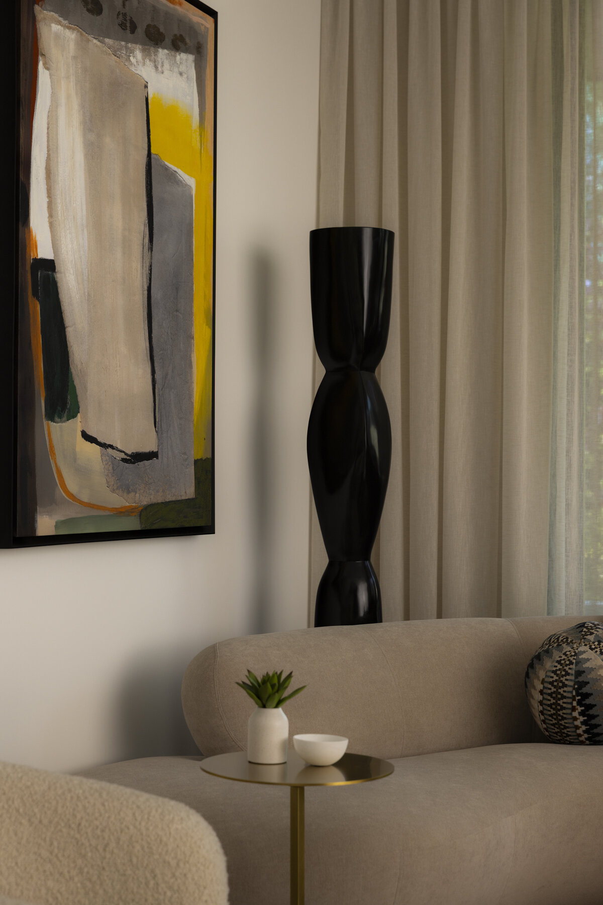 Link to Photo6, a black sculpture next to a painting