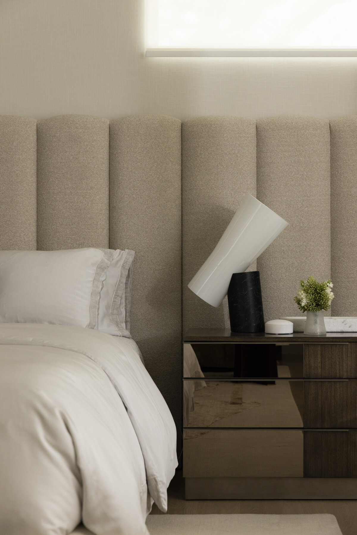 Link to Photo9, a bed with a white bed and a white lamp on a nightstand