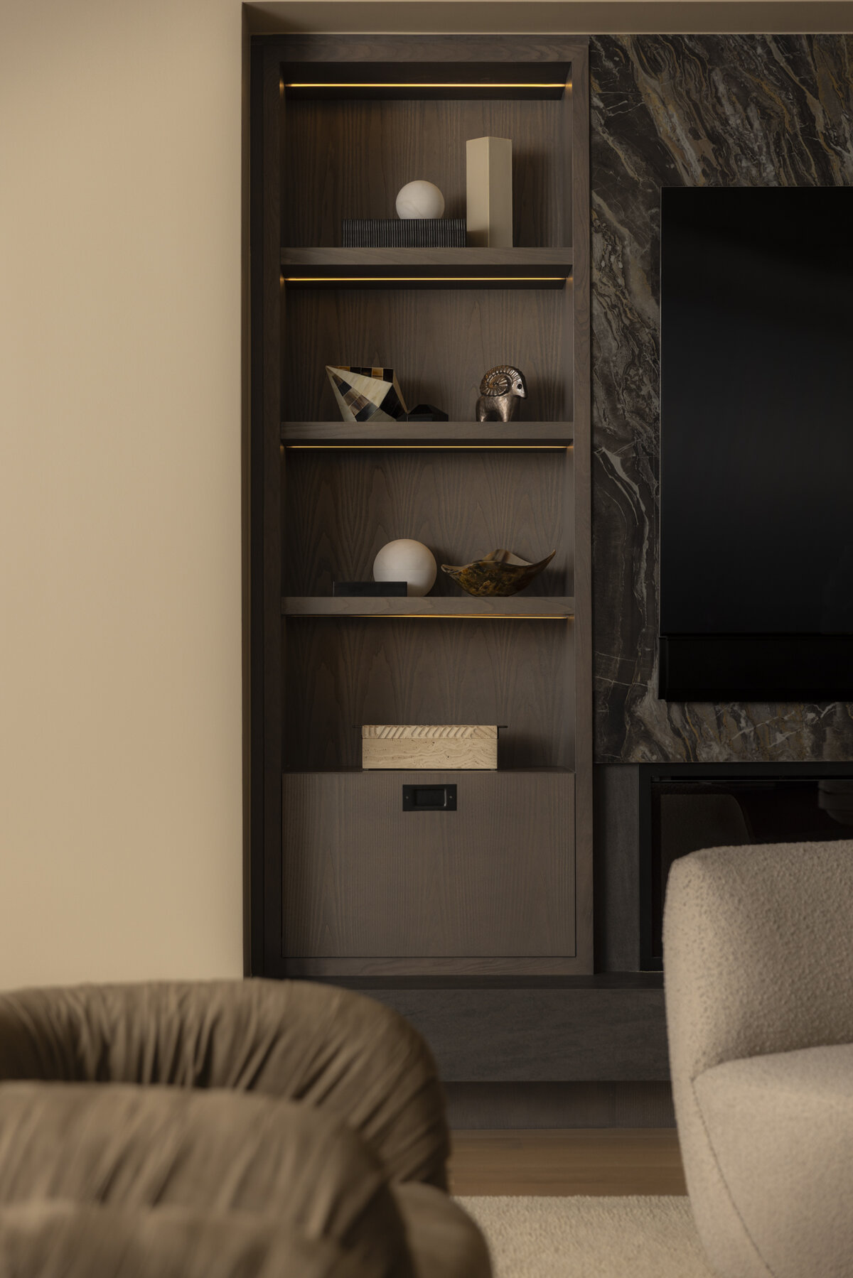 Link to Photo15, a shelf with shelves and a tv in the background